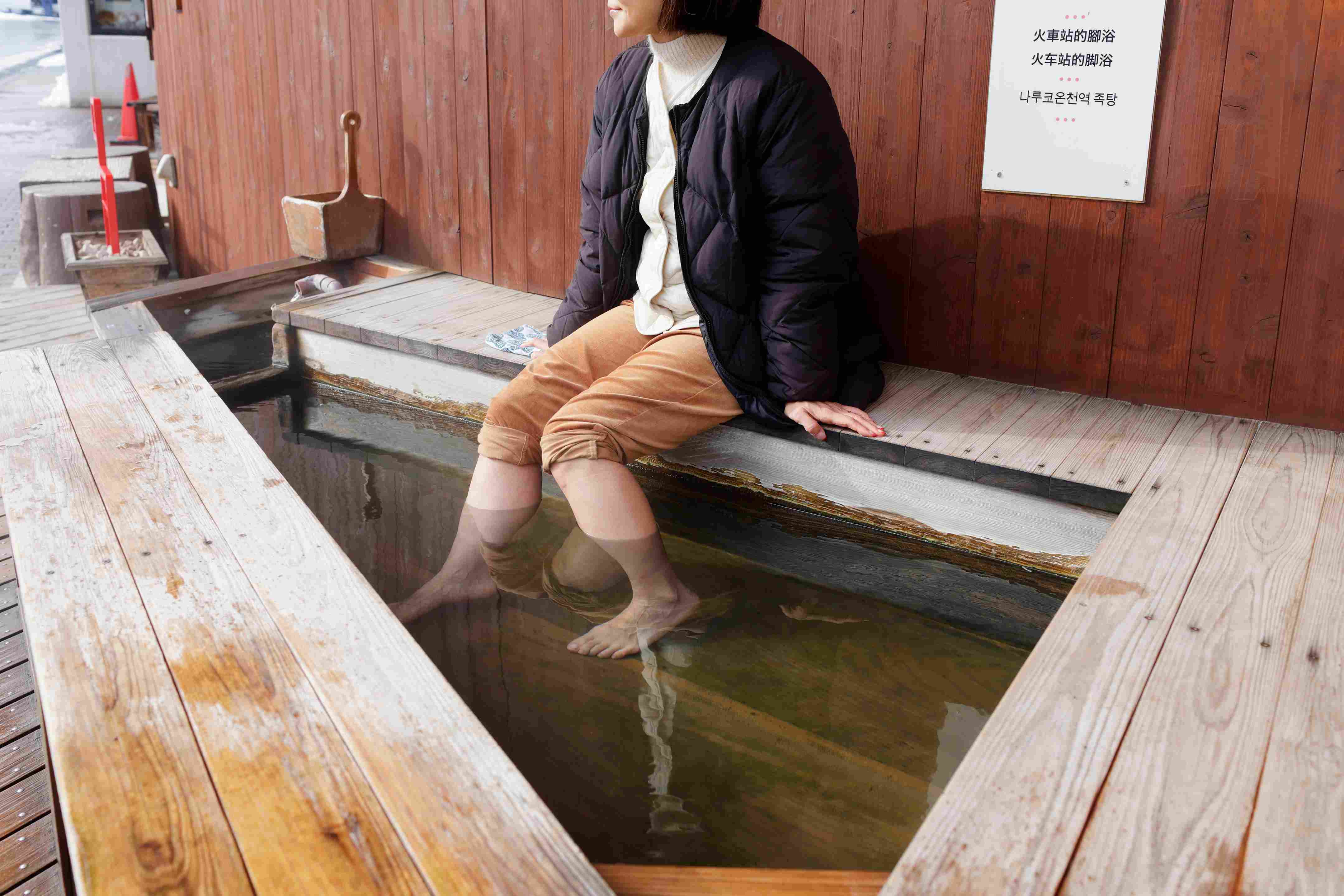 「ぽっぽの足湯」は鳴子温泉駅前にある足湯施設です。駅に到着してすぐに移動の疲れを癒す、帰路につく前や電車を待つ間に温まるなど気軽に利用可能。
