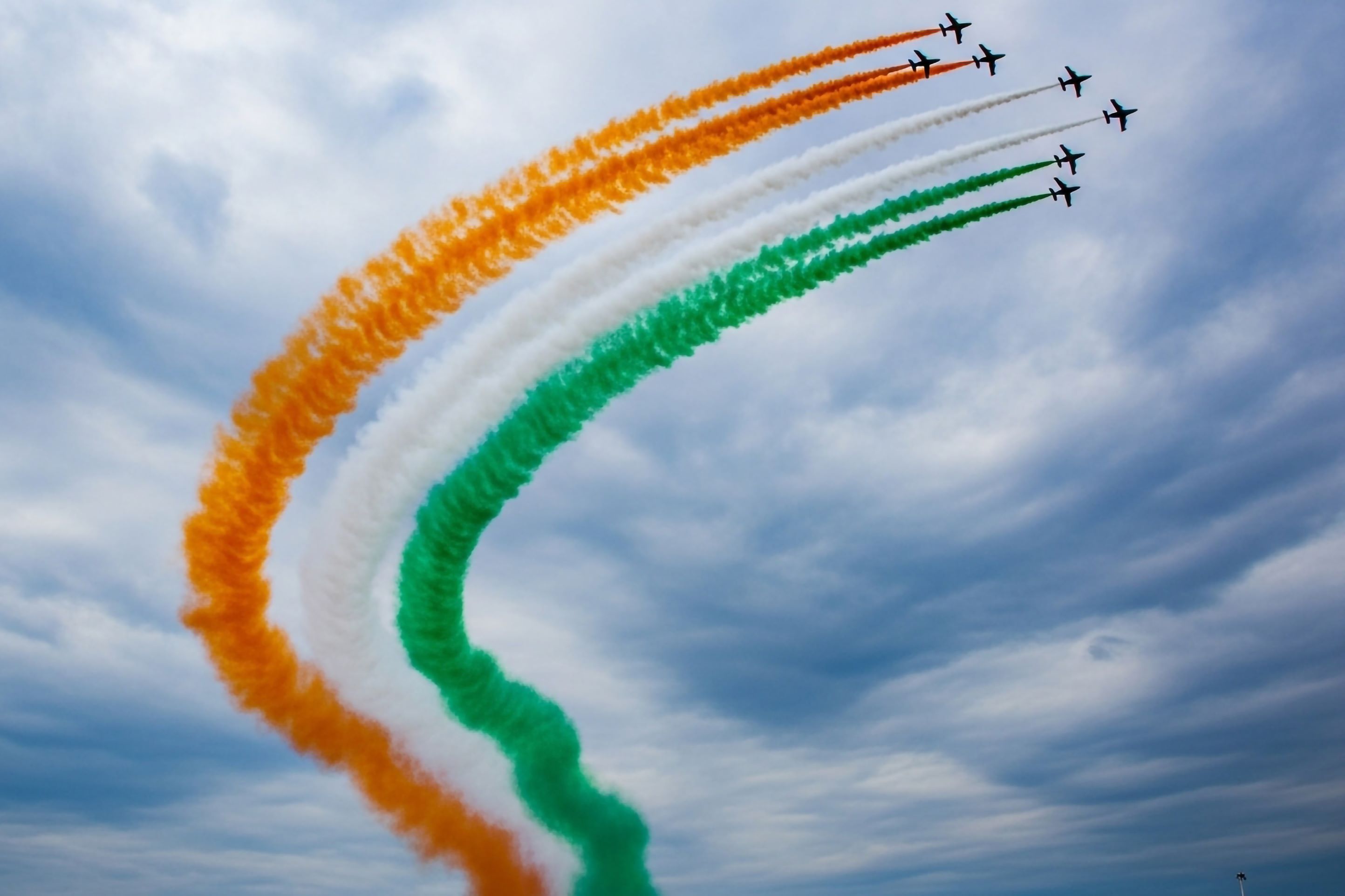 Acrobatic aircraft painting the sky with the colors of the Indian flag
