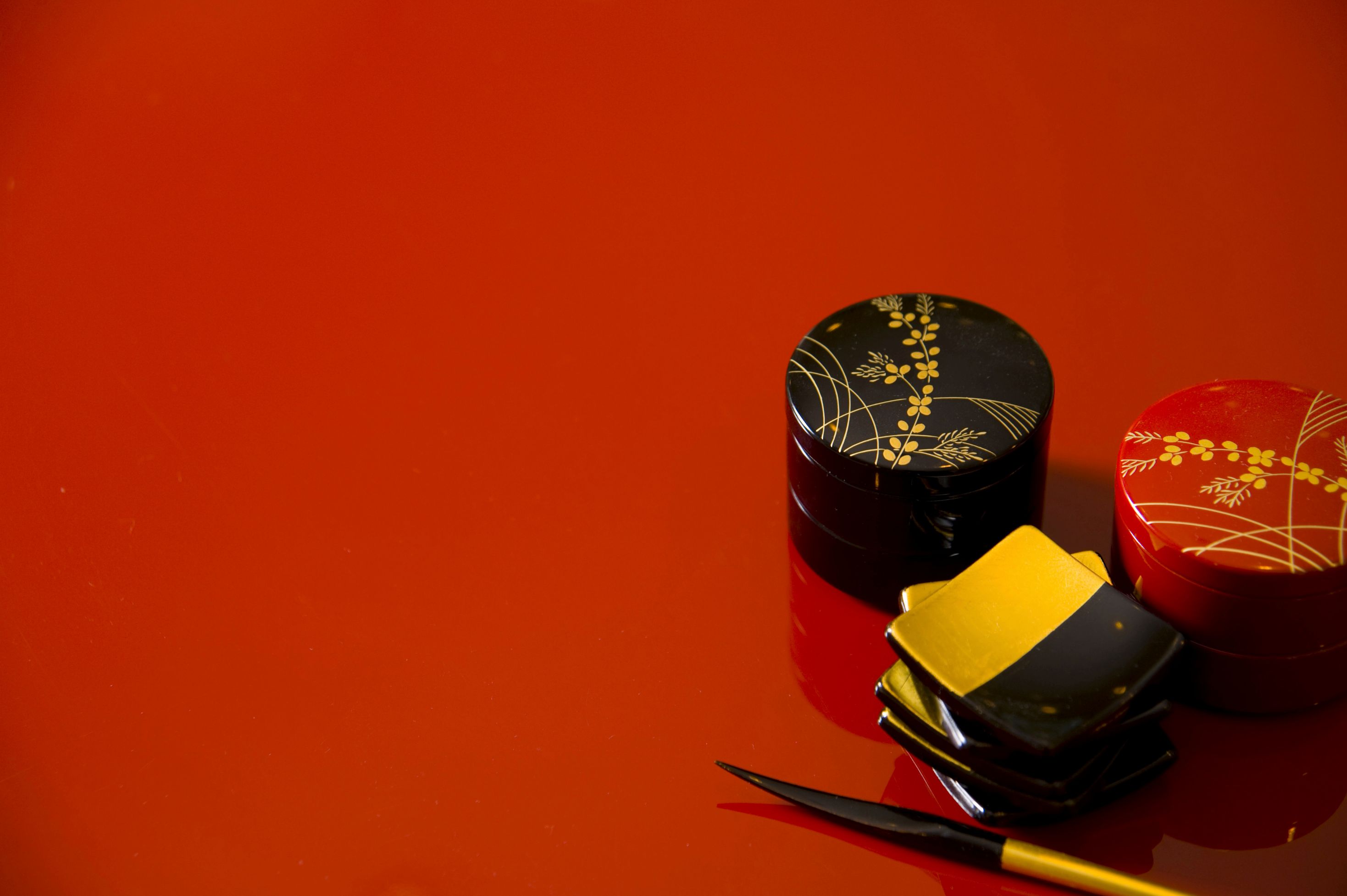 在我們的日常生活中,最貼近我們的就是漆器了。漆器是將稱為「木地(きじ)」的木質素胚,多次塗上漆並反覆打磨而完成的。漆器的技法多樣,有塗成朱色或黑色的漆面,也有運用金粉或螺鈿裝飾的蒔繪(まきえ)工藝。從日常使用的碗、重箱(層疊式餐盒)、餐盤,到慶典中使用的禮品等,漆器的用途十分廣泛。